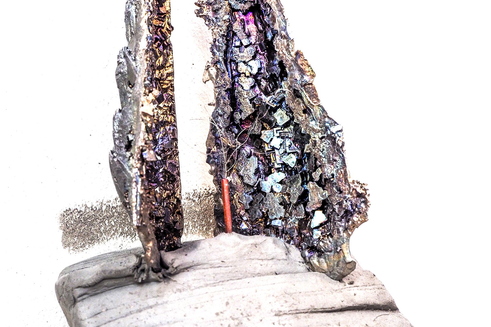 Piège Crystalin Un tazer se déclenche lorsqu’un observateur s’approche ou essaye de la toucher la géode de Bismuth en forme d’épis de blés, en fer de lance.